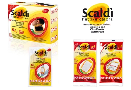 Scaldì è il rivoluzionario sistema composto da bustine autoriscaldanti che, inserite all’interno delle apposite fasce, rilasciano una miscela di sostanze (sicure e non inquinanti) che, al semplice contatto con l’aria, attivano una reazione termica provocando calore.