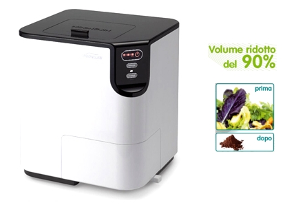 Grazie alle piccole dimensioni questo tritarifiuti può essere tranquillamente posizionato sotto al lavello di qualunque cucina e in circa un’ora è in grado di trattare rifiuti prodotti da un’intera famiglia e trasformarli in polvere riducendo del 90% il volume.