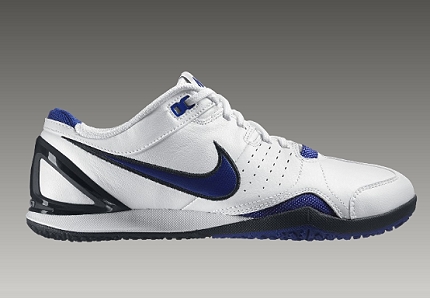 Queste scarpe da training sono disponibili nella colorazione bianca con logo Nike blu ed inserti neri.