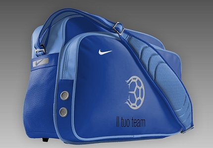 Nell’immagine è possibile vedere la forma della borsa, i colori fanno parte di uno dei design proposti da Nike iD, all’interno dello Store ufficiale ne sono presenti decine con ogni tonalità di colore. Il simbolo può essere modificato con uno di quelli disponibili così come il tuo nome sopra e sotto il logo.