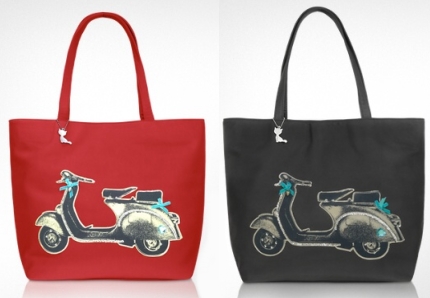 Questa borsa in eco pelle è ideale per ogni stile, è disponibile in due colori: rosso oppure nero e riporta una stampa che raffigura la vespa.
