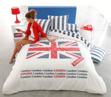 Disponibile sia nella versione singola che matrimoniale questo copripiumone ricalca lo stile pop-rock con i colori della bandiera britannica.