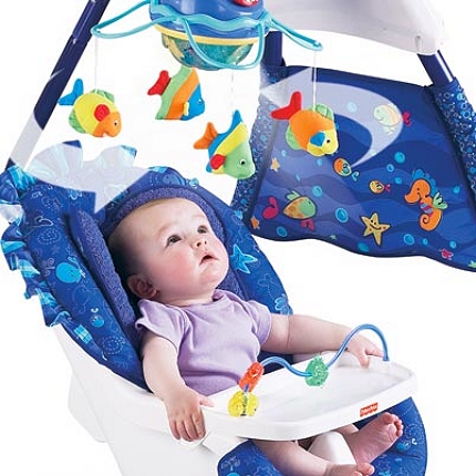 Fisher Price ha ideato un’altalena per cullare il vostro bambino con differenti movimenti oscillatori uniti a suoni e spettacoli acquatici.