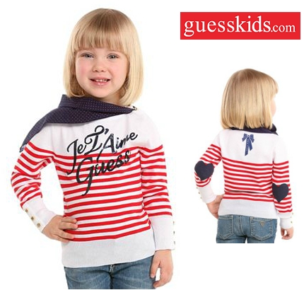 Guess Kids lancia la nuova linea di capi d’abbigliamento per bambine dai 2 ai 5 anni per la collezione autunno inverno 2012: oggi vi parliamo delle felpe da bambina Guess Cotton Stretch Striped Sweater.