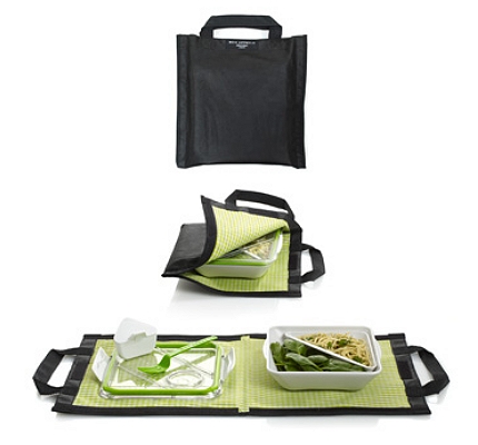 Questo porta pasti infatti è una borsa che una volta aperta si trasforma in tovaglietta per mangiare sulla tua scrivania oppure in coperta per sedersi su un prato e gustarsi il piatto che vi siete portati da casa.