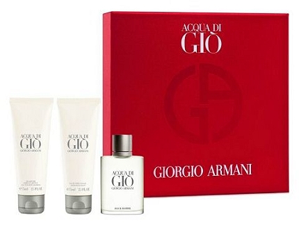 Questo cofanetto è composto da eau de toilette da 50ml Acqua di Giò, shower gel da 75ml e balsamo dopo barba da 75ml.
