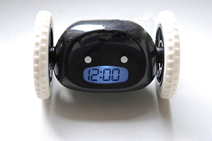 Questa fantastica sveglia ha la funzione snooze e due ruote, al terzo snooze Clocky inizia a correre, salta giù dal comodino e gira per la stanza in modo del tutto casuale continuando a suonare!