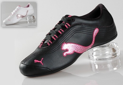 Disponibili in due colorazioni: nero con logo Puma rosa e bianco con logo grigio.