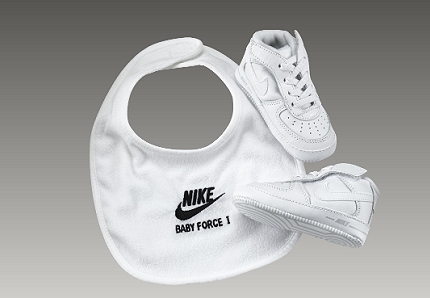 Per i più piccoli Nike ha studiato una confezione regalo davvero deliziosa, comoda ed utile. Infatti il set Nike Air Force è composto da scarpine per i primi passi del bimbo e da un utilissimo bavaglino firmati Nike.