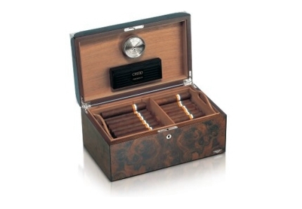 Realizzata in noce è dotata di divisorio interno per contenere i sigari anche di differenti misure. Questa scatola porta sigari in legno pregiatissimo è un oggetto per veri intenditori, ha al suo interno un deumidificatore e idrometro per garantire l’ideale conservazione del sigaro e mantenere inalterato l’aroma.