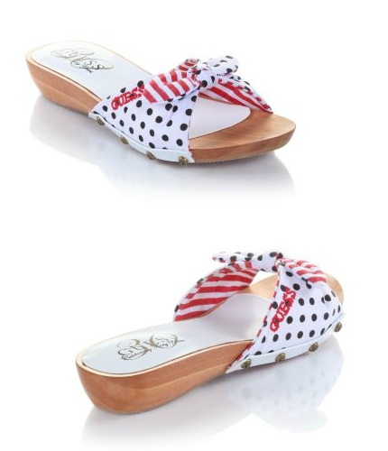 I sandali da bambina Guess Ginger sono la soluzione ideale per un look estremamente femminile durante l’estate 2012: sono infatti degli zoccoli per celebrare i 30 anni di Guess e si presentano con una fantasia allegra ed estiva.